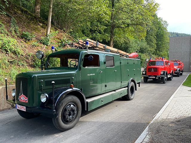 Mitarbeiterteam holten uns mit mehreren historischen Feuerwehren und
