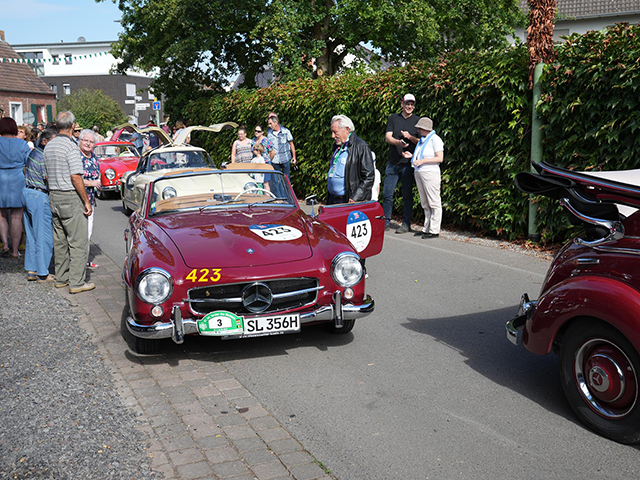 Zwischen Schevenhütte und Vicht warteten die Oldtimerfreunde Langerwehe auf die Teilnehmer, um die Sonderprüfung 3 durchzuführen. Hier musste mittig durch ein Gatter gefahren werden. Weiter führte die Strecke nach Eupen und Henri-Chapelle in Belgien. Imposant war sicherlich ein Stop am Henri-Chapelle American Cemetery and Memorial.